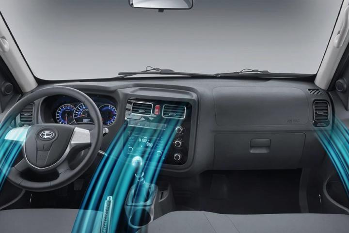 Khoang cabin được thiết kế để tối ưu không gian với khoảng để chân rộng, trần xe cao và thoáng. Ghế bọc nỉ cao cấp, êm ái và dễ vệ sinh. Dây đai an toàn 3 điểm trang bị tiêu chuẩn.